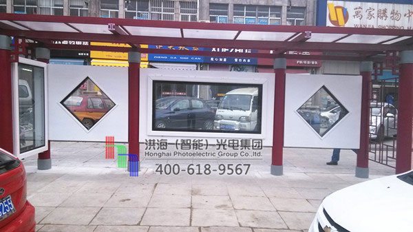 這是制作的第二種款式的仿古公交候車亭站牌,共7種款式,正面候車亭箱體為雙面滾動換畫,尺寸為3m*1.5m,側面也為雙面滾動換畫,箱體尺寸為1.2m*2m,均由洪海公司設計人員設計,為山東煙臺的客戶專門定制,為煙臺市民遮風擋雨的同時,打造煙臺市區獨特的公交站臺候車亭站牌景觀,讓市民在等車時也是一種精神享受。專業的仿古公交候車亭站牌生產制作廠家,您的滿意就是我們的追求,歡迎新老客戶來廠訂購。