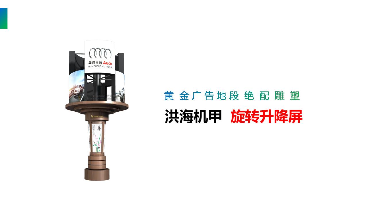 360度自由旋轉(zhuǎn),每塊屏體在旋轉(zhuǎn)的同時可以自由升降旋轉(zhuǎn),達到物理上動感和視頻創(chuàng)意的有機結(jié)合。每個led旋轉(zhuǎn)屏的視頻可以獨立控制,可以播放組合的視頻或獨立的視頻,結(jié)構(gòu)有立體層次感,顯示的視頻畫面更逼真。